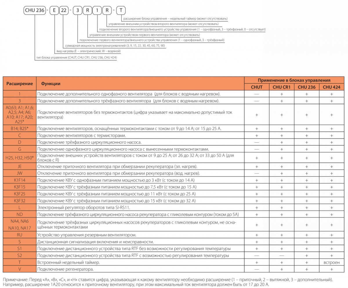 Обозначения блока управления CHUT-E30-11