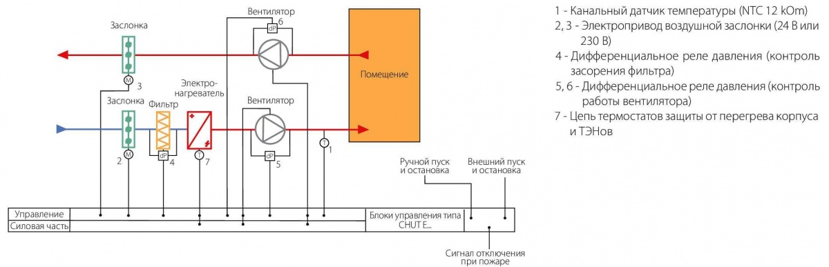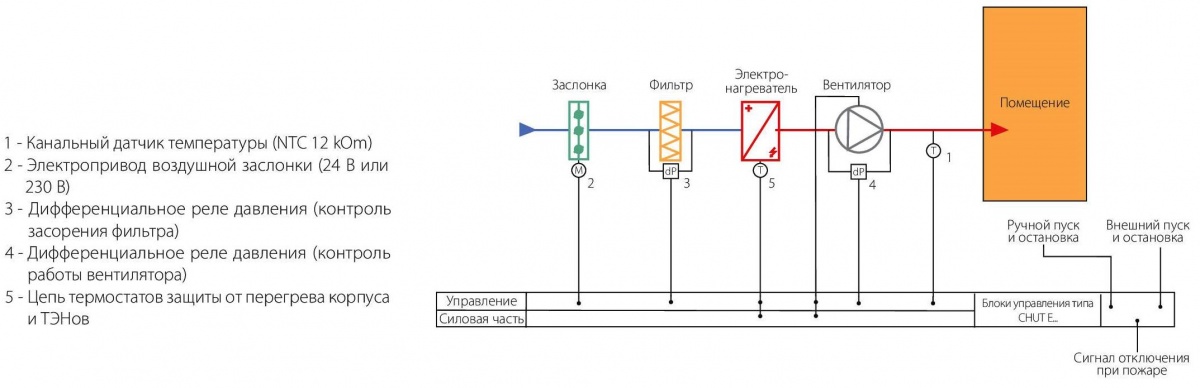 - Подключение электрических воздухонагревателей суммарной мощностью до 30 кВт;